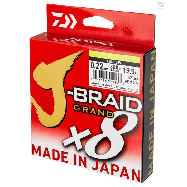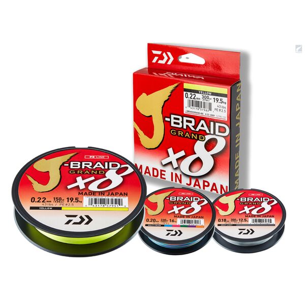 Шнур плетеный Daiwa J-Braid Grand X8 270м 0.19мм 25lb — это сплетенная из 8-ми волокон леска PE, изготовленная из совершенно нового сырья (Izanas) с применением новейшей технологии изготовления. J-Braid Grand изготавливают в Японии.