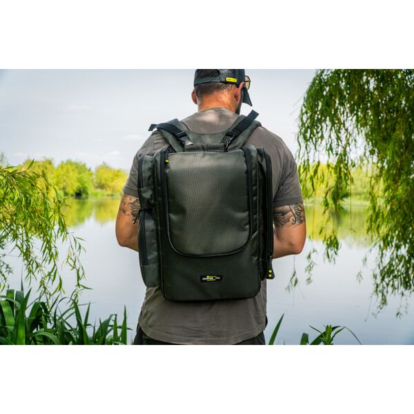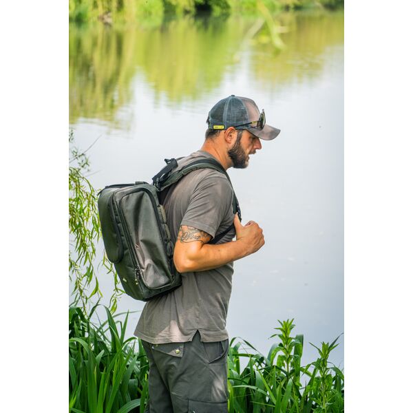 Рюкзак для кораблика RidgeMonkey Hunter 750 Rucksack - изготовлен из высококачественного материала 1680Д и специально разработан для простоты и удобства транспортировки нашего прикормочного кораблика Hunter 750. Стоит также отметить, что этот рюкзак идеально подходят для мобильных рыболовов, вне зависимости от того, проводите ли Вы короткую дневную рыбалку или же выбрались на водоем на целый выходной. Компактный дизайн рюкзака облегчает его переноску и помогает сэкономить свободное пространство на тележке. Благодаря низкому профилю рюкзака, Вы легко сможете спрятать наш рюкзак у себя под раскладушкой во время рыбалки, когда Вы им не пользуетесь. Основа рюкзака выполнена из ПВХ, поэтому сам рюкзак характеризуется повышенной износостойкостью и водонепроницаемостью. В верхней части рюкзака имеется мощная рукоятка для переноски, в то время как мягкие набитые лямки имеют целых четыре точки регулировки, что позволяет Вам добиться идеальной просадки рюкзака на Вашей спине. Добавьте к этому дополнительную подкладку на задней панели рюкзака, которая поддерживает Вашу поясницу в ровном положении, и Вы получите максимально комфортный рюкзак для транспортировки даже самых тяжелых снастей. По бокам рюкзака также имеются три наружных кармана на молнии. Доступ к основному отсеку рюкзака осуществляется при помощи откидного клапана размером в 2/3 самого рюкзака. Сам откидной клапан имеет двойные замки для удобства открытия.