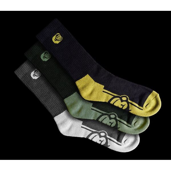 Ridge Monkey APEarel Crew Socks 3 Pack - Эти классические носки средней длины, представляющие собой непревзойденный универсальный вариант, идеально подходят для ношения с шортами или более длинными штанами или брюками, а также самой разнообразной обувью. Эти носки, изготовленные из очень мягкого композитного материала, обладают влагоотводящей технологией COOLMAX®, которая обеспечивает прохладу, сухость и комфорт Ваших ног. Плотная ребристая резинка отвечает за надежность фиксации на ноге, в то время как утолщенная амортизирующая стопа обеспечивает исключительную теплоту и защиту от резких ударов при перемещении. Высококачественная отделка и сдержанная отделка логотипами компании «Ridge Monkey» гарантируют, что вся линейка одежды «APEarel» будет отлично сочетаться с любым местом, куда вы решите ее надеть. Носки выпускаются в размерах 6-9 и 10-12. В комплект входит три пары носков: по одной паре черного, серого и зеленого цветов.