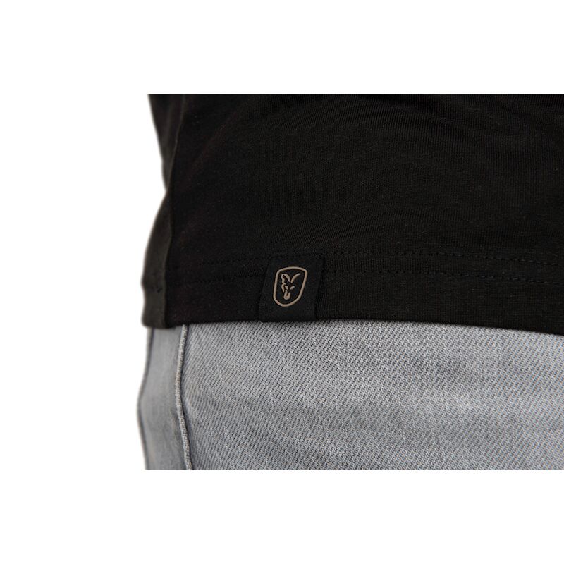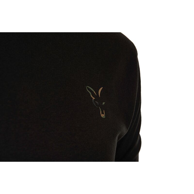 FOX Black FOX Head Logo T-Shirt — черная футболка с отпечатанным камуфляжным логотипом FOX на груди.