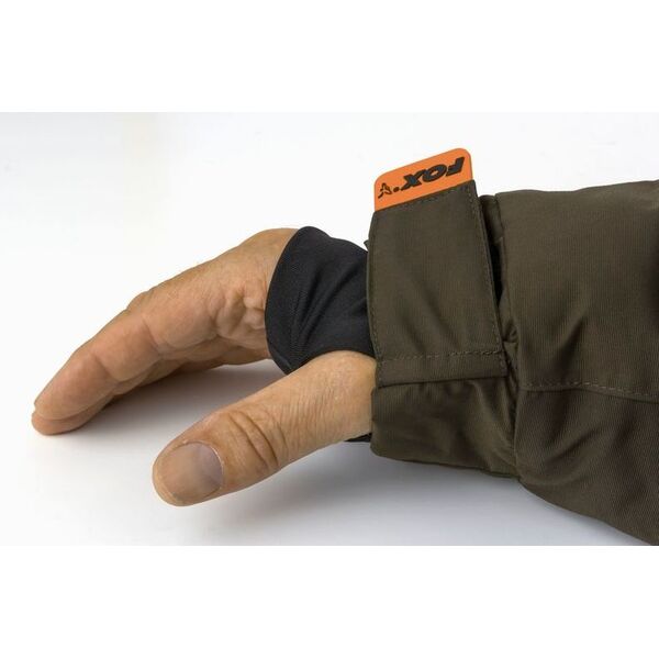 - Куртка также имеет внутренний нагрудный карман на молнии, внутренние неопреновые манжеты с отверстиями под большой палец и логотипами Fox.