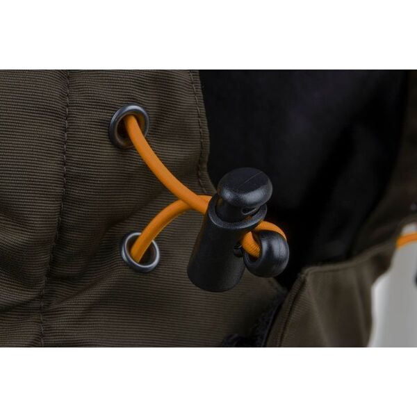 - Куртка имеет отстегивающийся капюшон с высокой защитной перегородкой для подбородка и регулируемыми, эластичными шнурами.