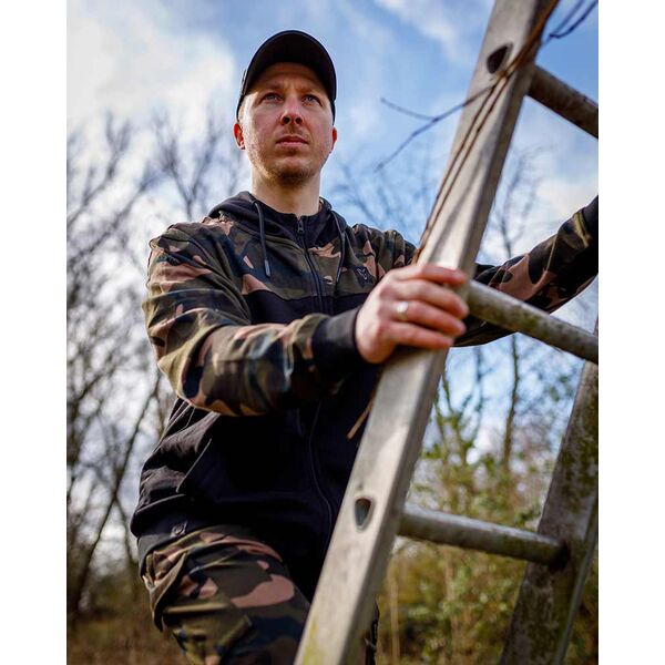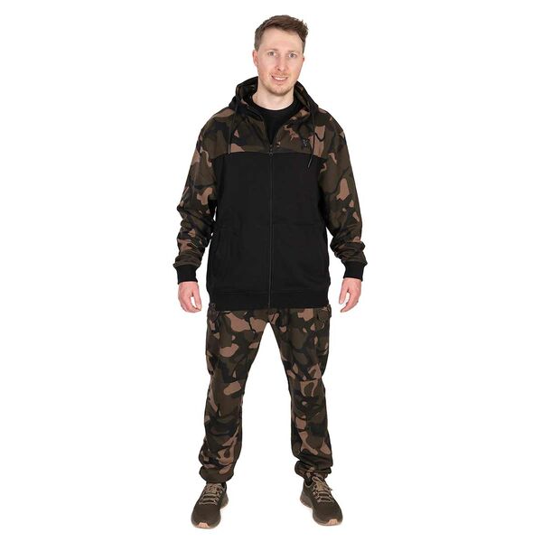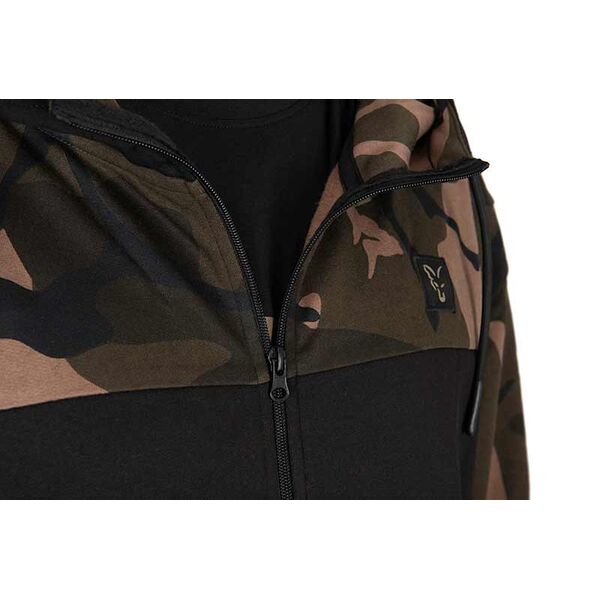 Главная/Карпфишинг/Одежда и Обувь/Толстовки и Кофты/Черно-камуфляжная легкая толстовка с капюшоном и молнией FOX LW BLack & Camo Split Zip Hoody