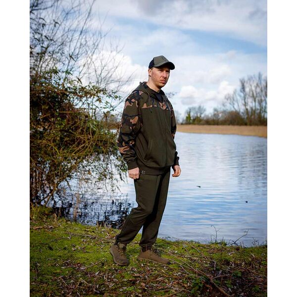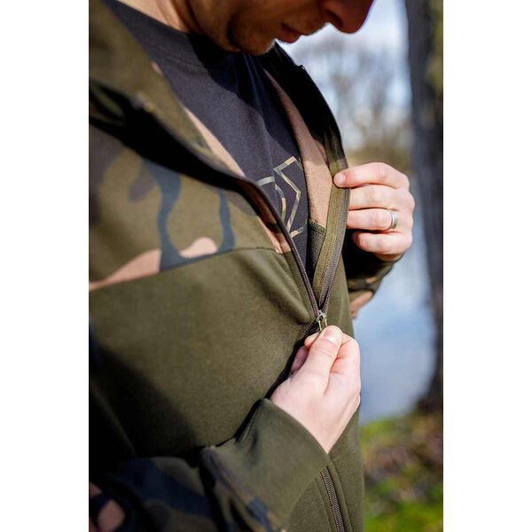 Главная/Карпфишинг/Одежда и Обувь/Толстовки и Кофты/Легкая толстовка с капюшоном и молнией хаки/камуфляж FOX LW Khaki/Camo Split Zip Hoody