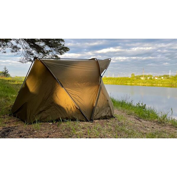- Палатка-ракушка с двумя дугами и увеличенным козырьком для дополнительной защиты.
