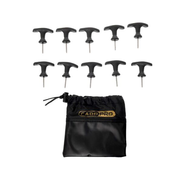 Колышки для понтона Carp Pro Platform Pegs 10шт - набор специальных колышков от компании Carp Pro с саморезами, предназначенных для закрепления палатки на деревянном помосте. Колышки Carp Pro Platform Pegs прочные, надежные, острые. Изготовлены из высококачественной стали и сверхпрочного пластика. Оборудованы удобными эргономичными ручками с фирменным логотипом Carp Pro. Поставляются в удобном и прочном чехле с затяжкой и усиленной от прокалывания нижней частью. В набор Carp Pro Platform Pegs входят 10 колышков.