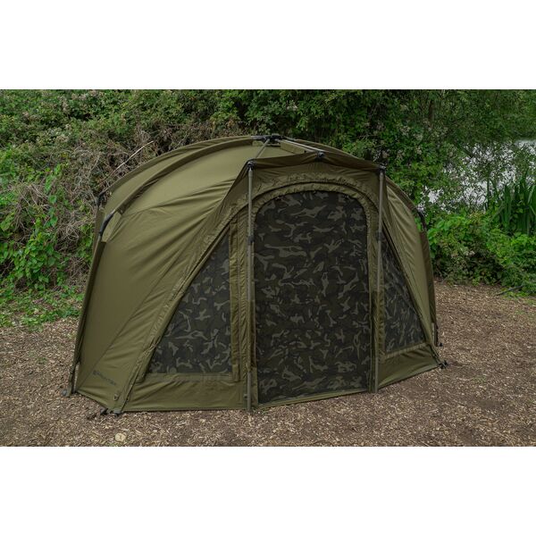 - Сплошная передняя панель с тремя вариантами входной двери: сплошная, прозрачная и из камуфляжной москитной сетки
