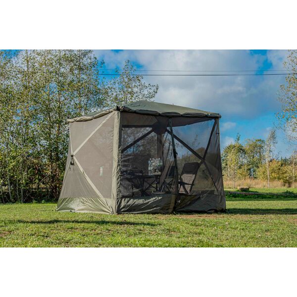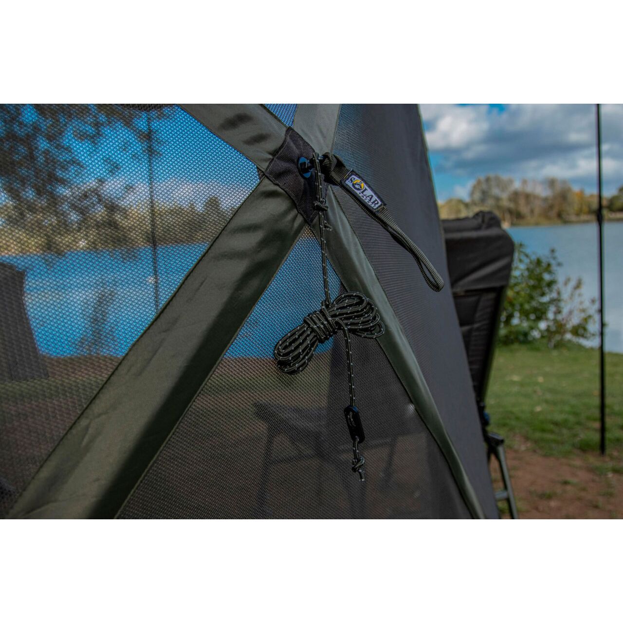 Шатер имеет высококачественную антимоскитную сетку «Solar» по всему периметру, при этом шатер имеет дополнительные сплошные панели с каждой стороны для дополнительной защиты от непогоды в случае необходимости. Боковины представляют собой полностью закатываемые вверх панели, которые изготовлены из фирменного высокотехнологичного материала «SolarTex», что позволяет настроить шатер «SP Cube» в соответствии с индивидуальными предпочтениями и потребностями рыболова на каждой рыбалке и для любых погодных условий.
