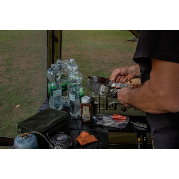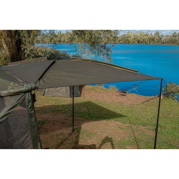 - Улучшенный жесткий козырек над входом в шатер создает дополнительное пространство для хранения всего необходимого и образует лаунж-зону перед входом в палатку