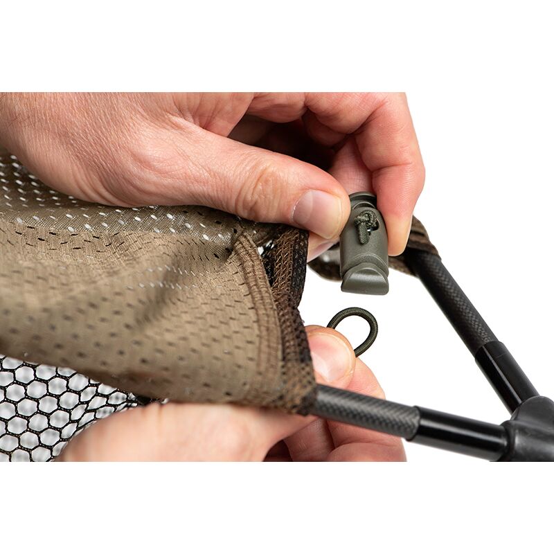- Простой и удобный фиксатор для крепления накидки вокруг сетки подсачека.