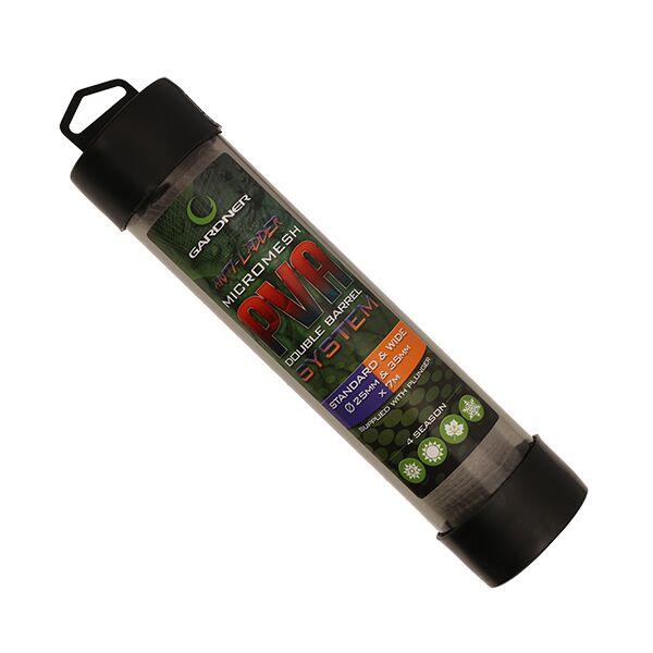Gardner Micromesh PVA Double Barrel System - от компании Gardner включает в себя как Стандартный (25мм), так и Широкий (35мм) тубусы, один из которых хранится внутри другого. В комплектацию системы также входит двухсторонний плунжер, обеспечивающий удобство изготовления ПВА-стиков и их плотность в готовом виде.