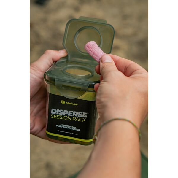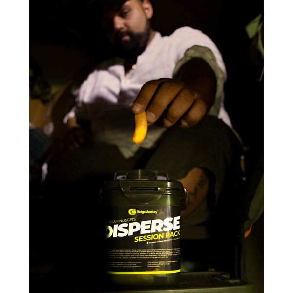 RidgeMonkey Disperse Session Pack - Поставляемые во влагонепроницаемом контейнере, эти разноцветные биоразлагаемые пенопластовые наггетсы идеально подходят для защиты вашего крючка, помогая предотвратить запутывание во время заброса, подвешивая вашу оснастку над илистыми водорослями или донным мусором перед растворением, позволяя ей мягко оседать на дно.