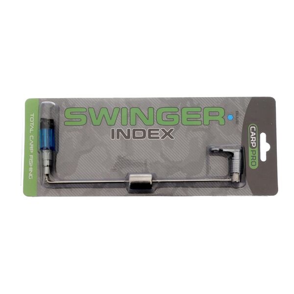 Свингер Carp Pro Swinger Index - Очень чувствительный механический сигнализатор поклевки для карповой ловли. Оснащен быстросъемным коннектором для крепления к род-поду. Жесткая шарнирная конструкция практически полностью исключает раскачивание ветром, при этом исключительно подвижная конструкция дает возможность фиксировать самые осторожные поклевки. Имеет «шариковый» фиксатор для лески, полностью исключающий ее повреждение. Предусмотрена исключительно точная регулировка веса – как с помощью смещения подвижного груза, так и с помощью шести металлических стержней, которые располагаются в специальных отверстиях, расположенных в цветной пластиковой головке. Выпускается в разных цветовых вариантах.