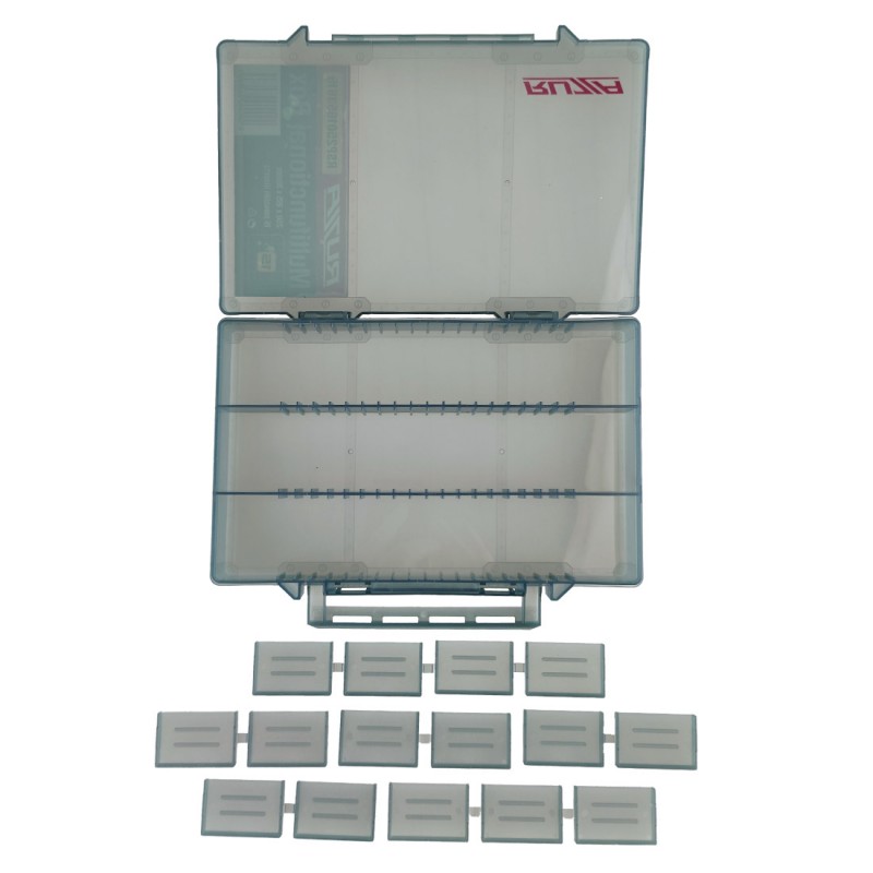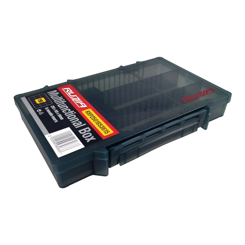 Коробка для приманок RUZZA 15 перемычек (250x165x36мм) - Односторонняя коробка для хранения приманок и аксессуаров из ударопрочного армированного пластика PP (полипропилен). Доступна регулировка свободного пространства посредством изменения расположения перемычек (15 шт). Подвижные вставки помогут гибко менять размеры отсека под Ваши нужды и задачи.