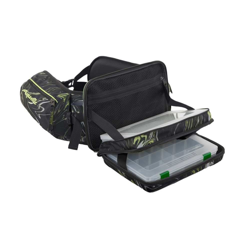 Пояс разгрузочный с коробками Aquatic ПР-04ДР (Темная Река) - В поясе имеется 2 кармана под коробки с дополнительными отделениями для аксессуаров. Верхний карман имеет жесткий формованный каркас. Задняя часть усилена пластиком. Комплектуется рыболовными коробками FB-250 ( 255x188x39 мм) и FB-250 SH ( 255х188х20 мм). Пояс имеет жесткий стакан для удилищ и два объемных кармана для аксессуаров. На поясе применены светоотражающие элементы. Жесткость самого пояса обеспечивает лист эвапоры, а мягкость специальный поролон с низким коэффициентом памяти и водопоглощения. Сумка с коробками снимается и может использоваться отдельно. Если перевернуть пояс, то его можно использовать как поддержку спины, что очень важно для людей с проблемами поясницы.