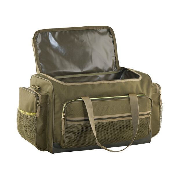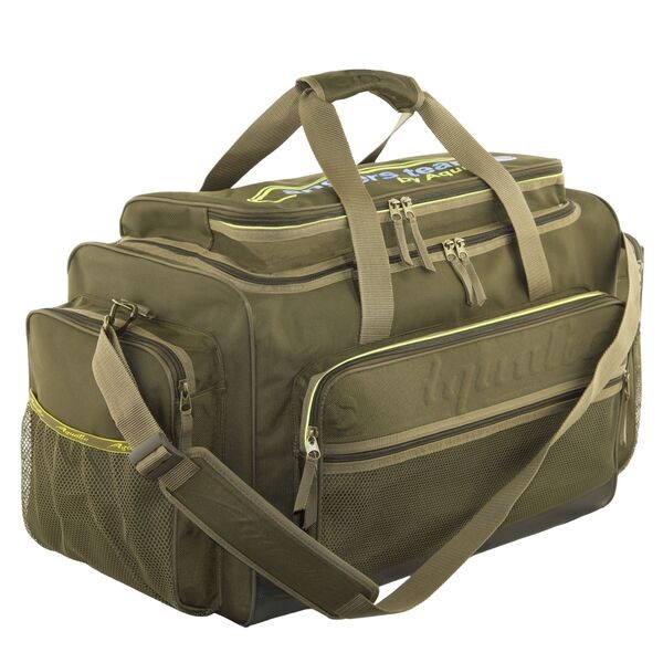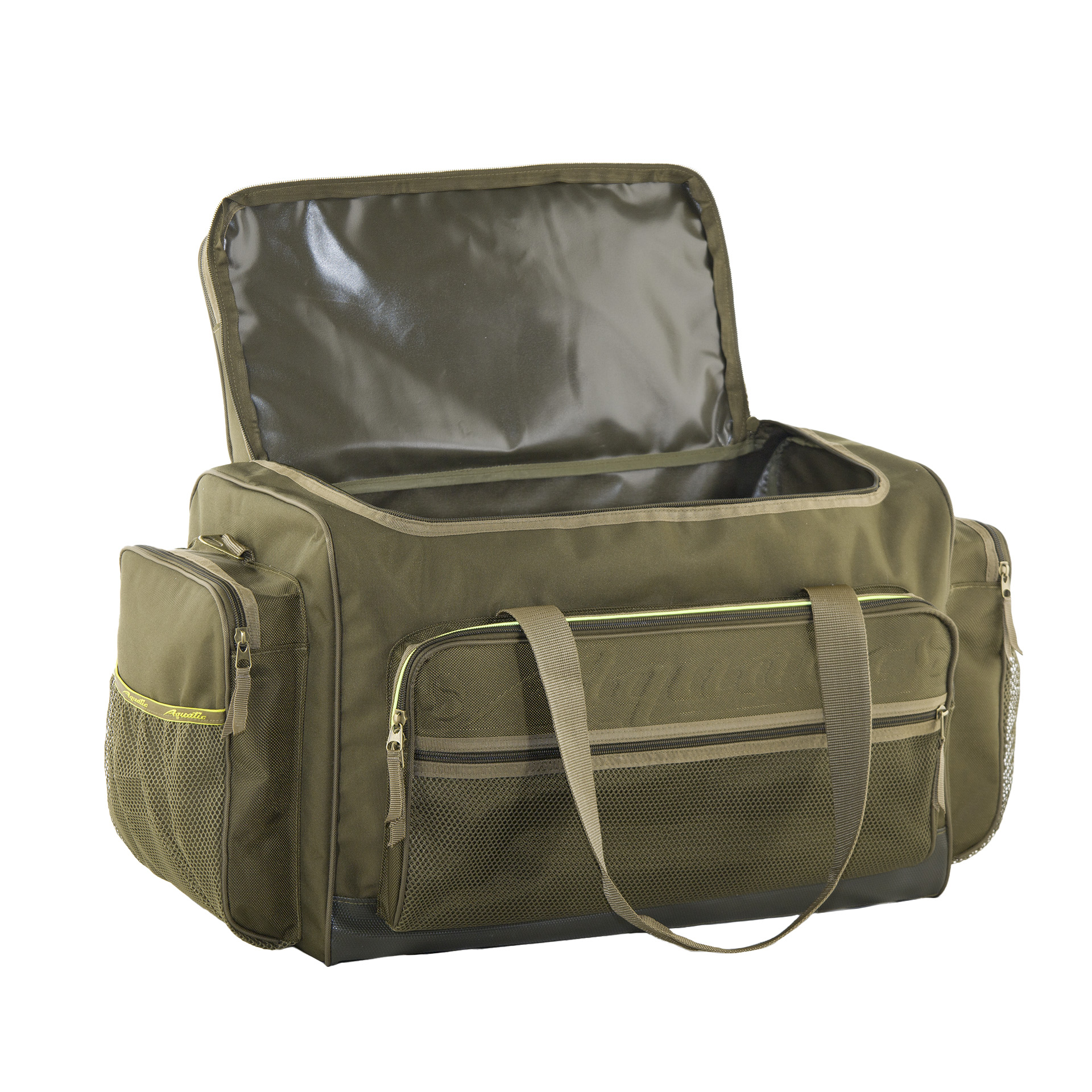 Сумка рыболовная Aquatic С-03 - объёмом около 80 литров. Изготавливается из полиестеровых, непромокаемых тканей 600×900D повышенной прочности. Сумка имеет 4 объемных накладных кармана, плюс дополнительные карманы из сетки. Дно изготовлено из материала ПВХ. Большая недорогая сумка Aquatic найдёт применение как на рыбалке и охоте так и в повседневной жизни.