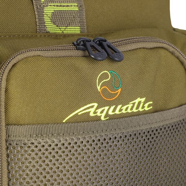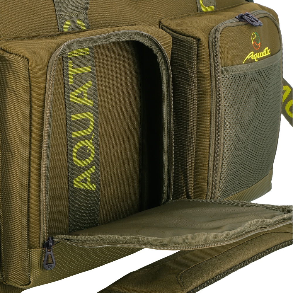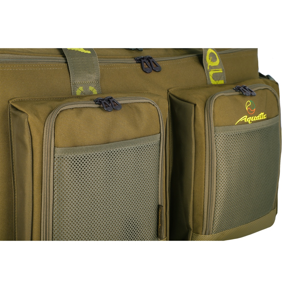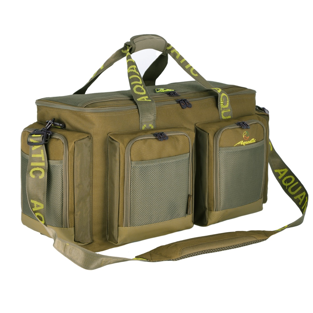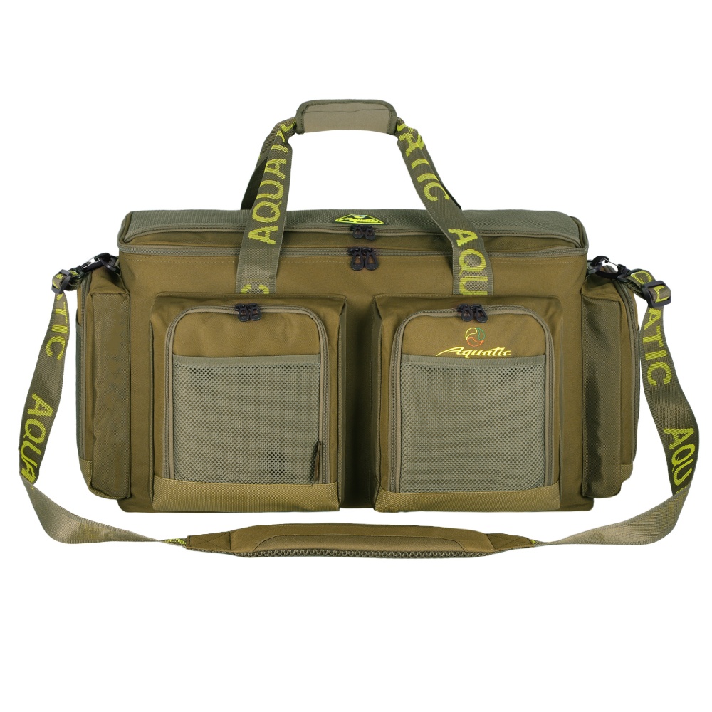 Сумка рыболовная Aquatic С-1-55 (55л) - из прочного материала Oxford 600D. Идеально подойдет для рыбалки, охоты, туризма и активного отдыха на природе. Сумка отлично держит форму благодаря наполнителю из вспененного полиэтилена. Для удобства переноски предусмотрены прочные ручки с мягкой вставкой на липучке и регулируемый плечевой ремень. Дно выполнено из непромокаемого материала ПВХ и оснащено прорезиненными ножками. Основное отделение объемом 45 л закрывается на молнию. С обратной стороны крышки предусмотрены три сетчатых кармана на молнии для рыболовных аксессуаров и принадлежностей. Два боковых и два передних кармана размером 20х25х5 см, продублированы сетчатым открытым карманом. Сумка для рыбалки Aquatic С-1-55 – это отличный подарок для рыбака и любителя активного отдыха.