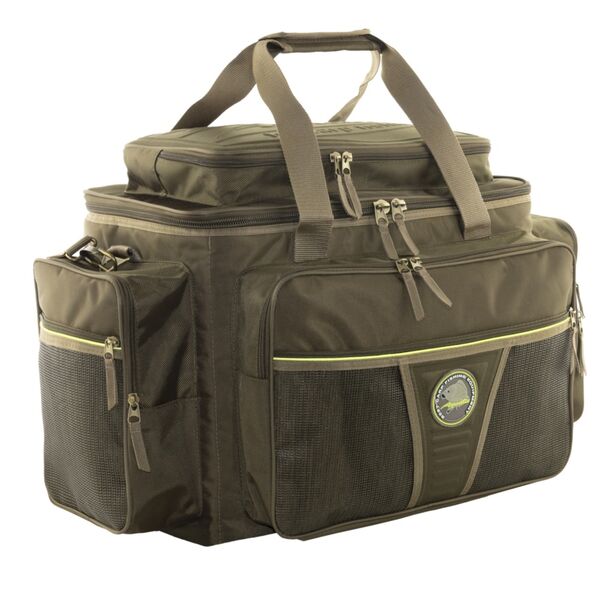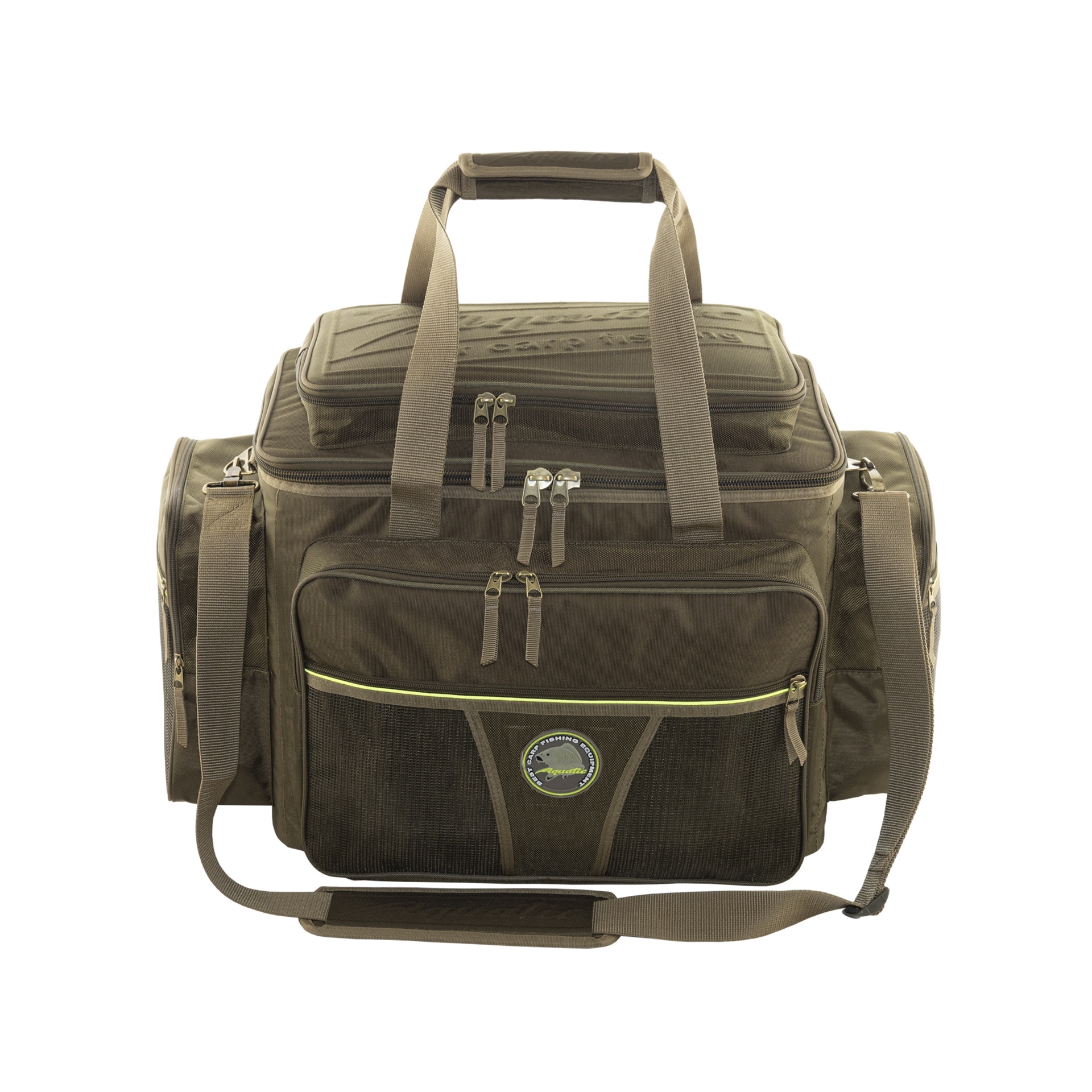 Сумка рыболовная Aquatic С-19 - В сумку вмещается 6 карповых катушек любого размера. Сумка укомплектована, сумкой для кормушек, грузил и т.д. Изготавливается сумка из непромокаемых тканей повышенной прочности, имеет 3 объемных накладных кармана дублированных карманами из сетки. В сумке имеются дополнительные карманы для сигнализаторов поклевки и других дополнительных аксессуаров. Жесткий корпус сумки обеспечит дополнительную защиту за счет вставок из пластика.