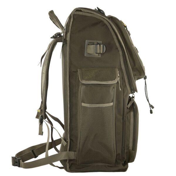 Рюкзак Aquatic Р-65 (Хаки) - изготавливается из непромокаемых нейлоновых материалов. Рюкзак имеет большой (удобный) вход в основное отделение, а также 4 объемных кармана с возможность закрепления дополнительных вещей снаружи. Спинка имеет пластиковую, плюс мягкую основу для комфортного ношения тяжелых и твердых предметов. Подвеска рюкзака с грудной и поясной регулировкой.