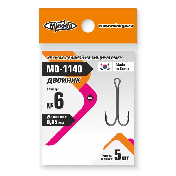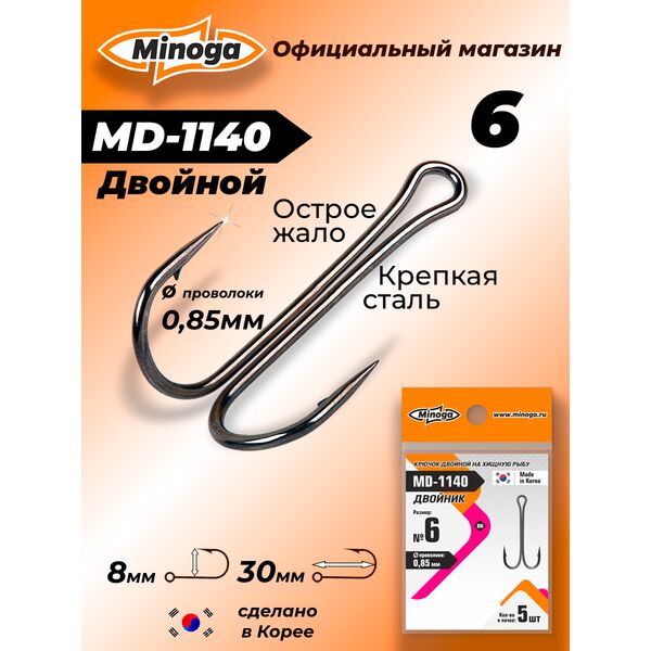 Крючки двойные Minoga MD-1140 №6 (5шт)