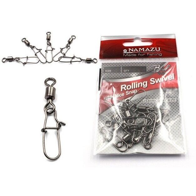 Вертлюг с застежкой NAMAZU Rolling Swivel & Nice Snap №5 35кг