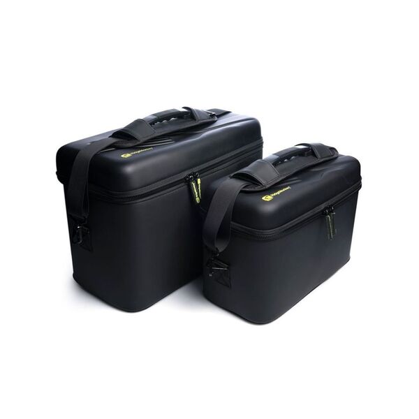 RidgeMonkey GorillaBox Cookware Case - Этот жесткий чехол предназначен для безопасного и организованного хранения всего необходимого Вам на рыбалке кухонного оборудования. Данный чехол имеет съемные подвижные перегородки и внутренний карман в крышке для хранения и защиты Вашего оборудования, включая горелки, створки тостера, чайник, кружку, тарелки, ложки, ножи, вилки и многое другое. Чехол имеет жесткий, удобный для очистки корпус и оснащен прочными двойными замками и съемным наплечным ремнем.