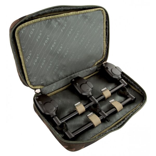 FOX Camolite Buzz Bar Bag - Данная сумка предназначена для переноски бузз-баров на 3 удилища, сделана из 100% полиэстера с гидростатическим давлением в 5000мм водяного столба. Во внутренние карманы легко помещаются сигнализаторы поклевки! Плотная ткань с плотной подкладкой позволяет обеспечить сохранность сигнализаторов при перевозке. Высококачественные двойные молнии. Окрашена в камуфляжный цвет.