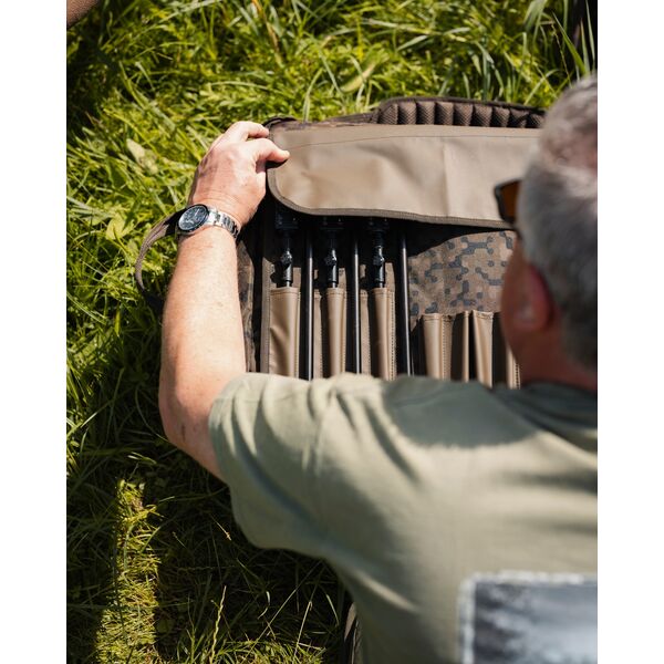 Сверток для стоек Solar SP C-Tech Bankstick Roll-RC - Если Вы являетесь фанатом ловли с одиночными стойками, то Вы и сами прекрасно знаете, как они могут греметь и биться в сумке или кармане, повреждая тем самым дорогостоящие сигнализаторы поклевки. Встречайте Сверток для Стоек SP C-Tech! Просто вставьте Ваши передние и задние стойки (сверток рассчитан на хранение наиболее популярных стоек длиной 30 и 40 сантиметров) в сборе вместе с сигнализаторами поклевки, механическими индикаторами поклевки и задними держателями удилища, набросьте сверху водонепроницаемый, удобный для очистки верхний клапан и магниты надежно зафиксируют Сверток в нужном положении. Вот такой вот простой, но эффективный способ защиты и организованного хранения Ваших снастей при транспортировке. Сам сверток изготовлен из материала с нанесением рисунка «SolarCam» - фирменного пиксельного взгляда компании «Solar» на камуфляжную расцветку – который выглядит одновременно функционально и стильно!