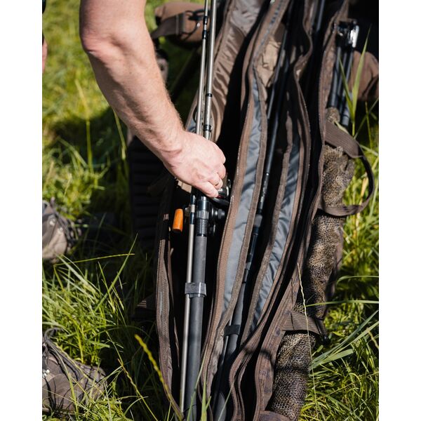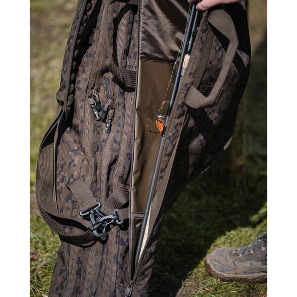 Будучи частью Модульной Концепции компании «Solar», дизайн этих универсальных чехлов позволяет прикреплять наши одинарный чехлы для удилищ линейки SP C-Tech, которые крепятся справа и слева основного чехла при помощи специальных карманов и прочных, надежных застежек. При необходимости Вы сможете повесить на застежки дополнительные одиночные чехлы с удилищами. Самопроветриваемый ремень «AirStrap» не дает Вашим плечам уставать и потеть при переноске.