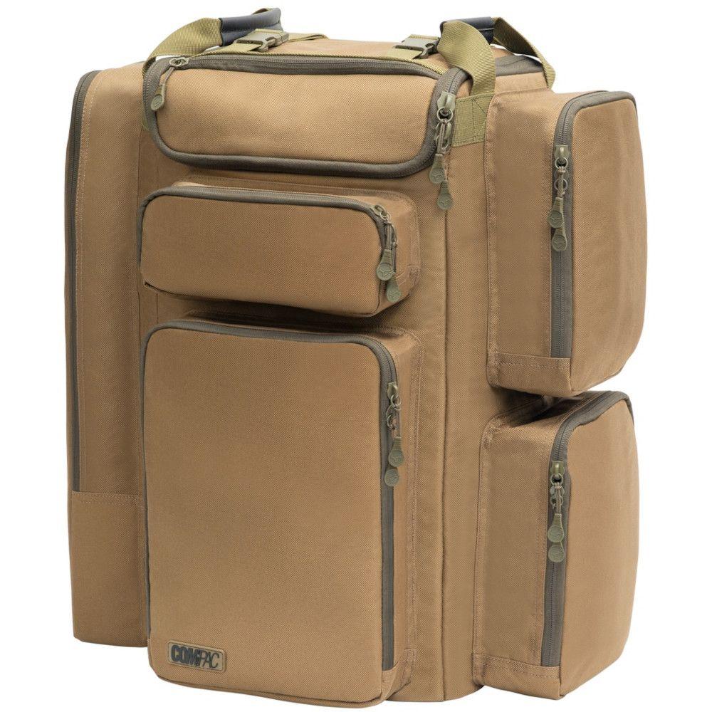 KORDA Compac Rucksack 60 - превосходный рюкзак объемом 60 литров, в котором достаточно места для хранения вещей, а также он позволяет хранить все Ваши снасти в порядке благодаря четырем внешним боковым карманам, размер которых идеально подходит для сумок Compac 100, 110 и 125, а также переднему карману, который обеспечивает быстрый доступ ко всем необходимым аксессуарам.