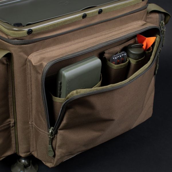 Сумка имеет пять внешних карманов, четыре из которых предназначены для подсумков Korda Compac 100, 110, 125 и 140 EVA.