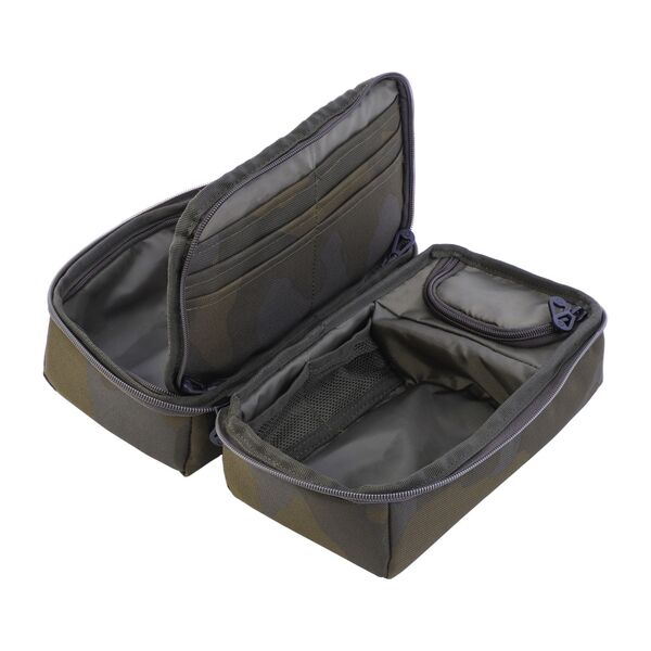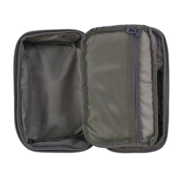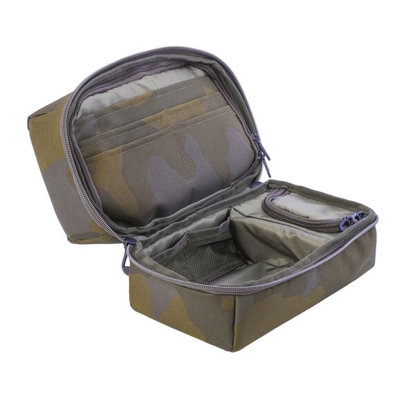 Сумка выполнена из прочного материала и оснащена фурнитурой премиального качества, благодаря чему будет долго сохранять первоначальный внешний вид. В ней все продумано буквально до мелочей и несмотря на компактные размеры она удивит своим удобством и функционалом. Сумка оснащена прочной ручкой со вставкой из качественного и износостойкого материала ЭВА, что обеспечивает легкую транспортировку. Благодаря стильному дизайну с логотипами компании она отлично впишется в любой арсенал и придется по вкусу большинству рыболовов. Модель состоит из двух отделений, разделенных перегородкой-органайзером. В нижней части расположено открытое отделение с небольшими кармашками для мелких предметов и просторный карман на молнии. Кроме рыболовных принадлежностей здесь также можно хранить катушку, запасную шпулю и лески. Верхняя часть продумана таким образом, что, за молнией открывается легкий доступ к просторному отделению, где можно удобно расположить крупные аксессуары, кормушки, грузы или рыболовные инструменты. Вкладка-органайзер с одной стороны выполнена в виде кармана из сетчатого материала на молнии, а с другой стороны имеются 6 карманов для мелких предметов (крючков, стопоров, вертлюжков, застежек и т.д.)