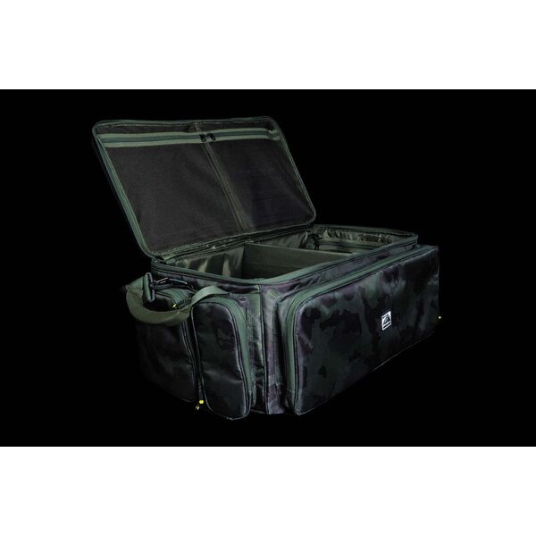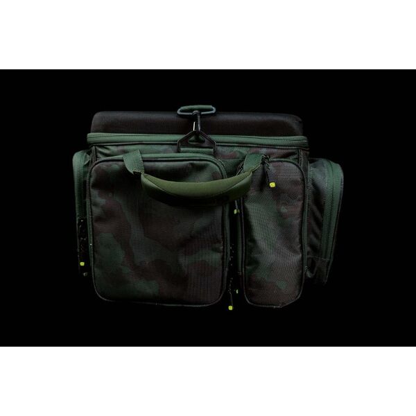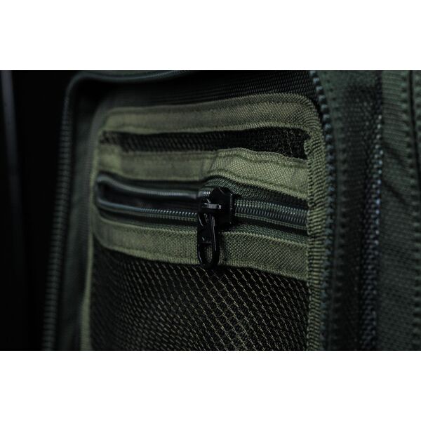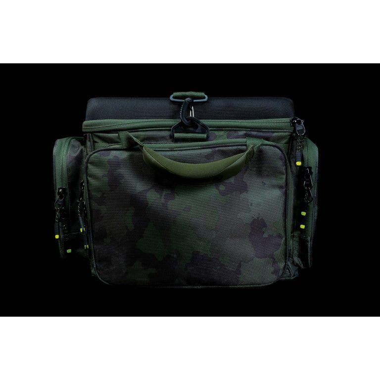Сумка имеет шесть наружных глубоких карманов на двойных замках, что обеспечивает легкий доступ к Вашим рыболовным снастям при мобильной ловле прямиком с тележки. Сумка идеально подходит для хранения тэкл-боксов, сумок для аксессуаров, кейсов для монтажей и других похожих предметов.