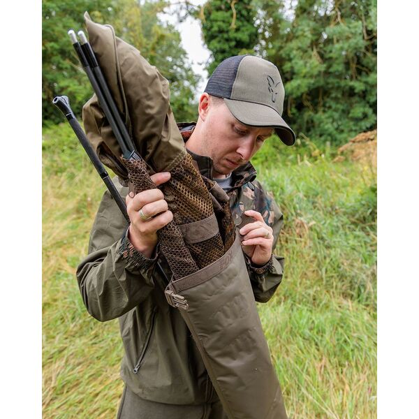 - Стандартная сумка вмещает 1 х сетку подсачека и 1 х сумку-отпускалку «Fox Carpmaster STR»