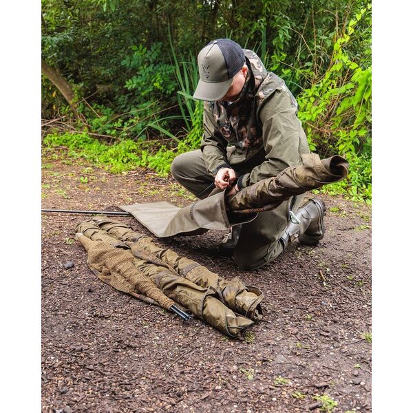 - Сумка размера XL вмещает 2 х сетки подсачека и 2 х сумки-отпускалку «Fox Carpmaster STR»