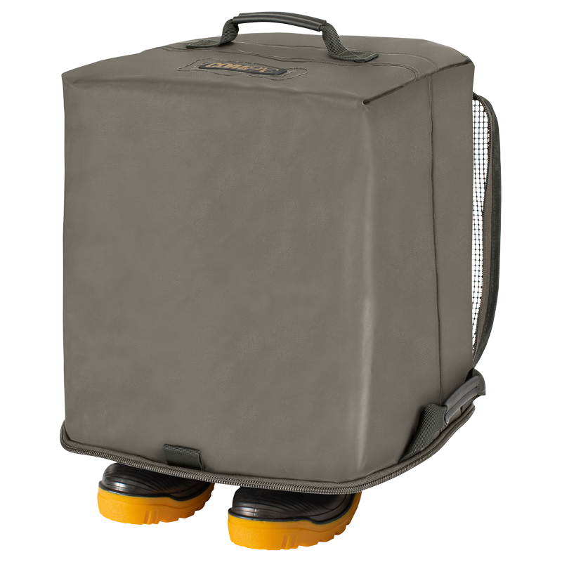 Сумка для перевозки и хранения вейдерсов Korda Compac Fishing Wader Cover - не только решает эту проблему, но и позволяет хранить вейдерсы в транспорте, чтобы все остальное на тележке или в автомобиле не было мокрым и грязным. Вы можете размещать свои вейдерсы в любом месте своего лагеря во время сессии, накрыв их сумкой, как чехлом, а затем, когда вам нужно их использовать, просто снимите чехол с помощью ручки на верхней части, и вы готовы к работе.