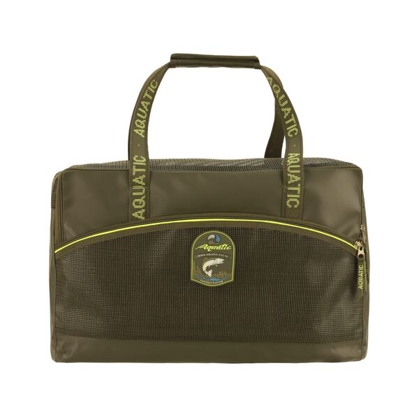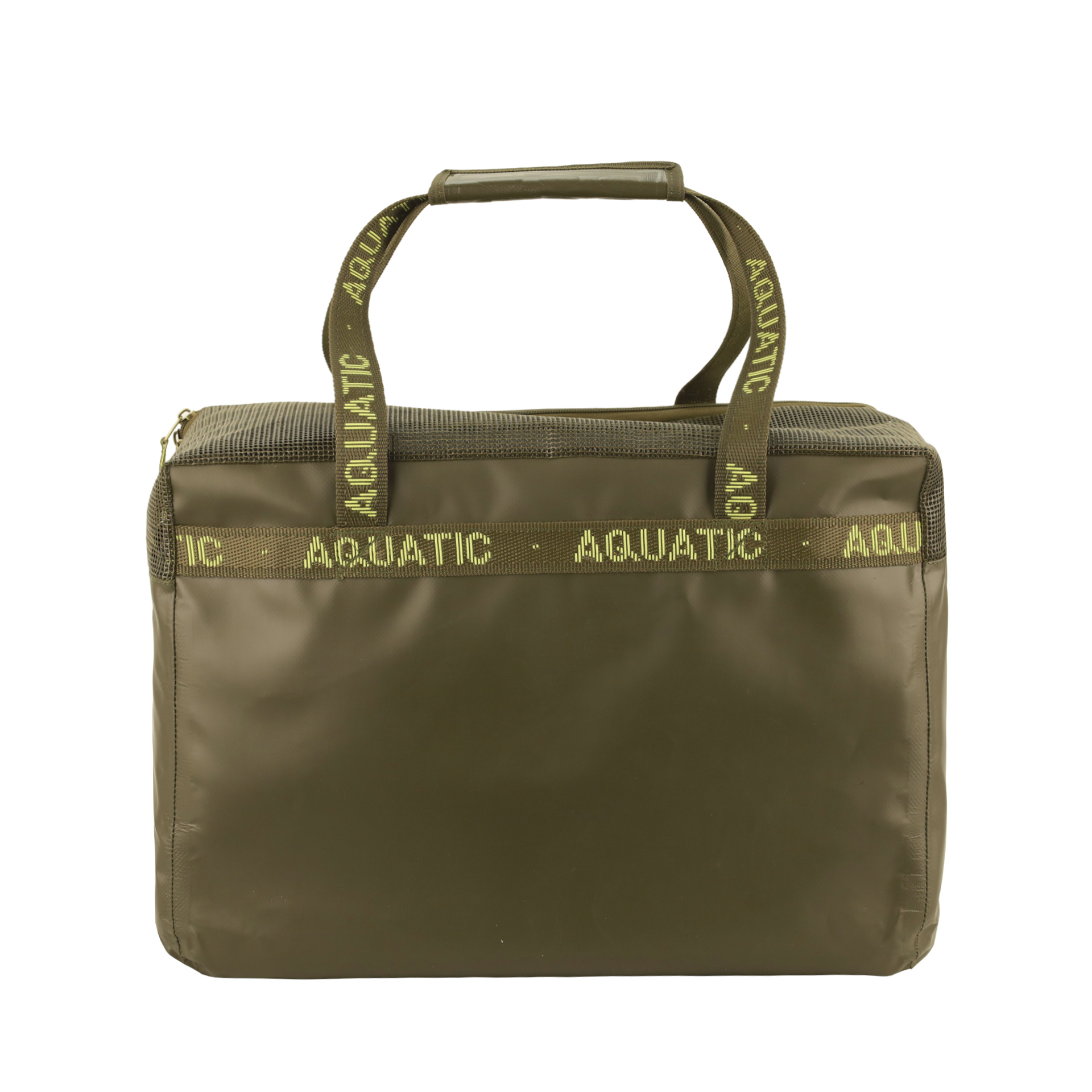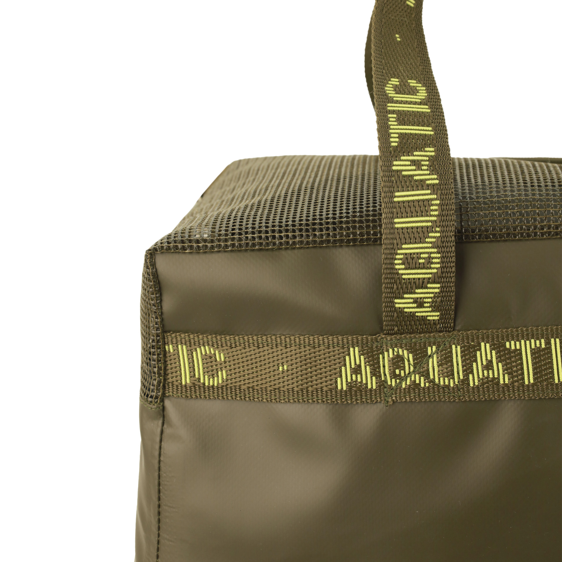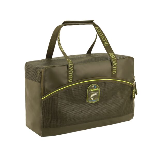Сумка для вейдерсов и обуви Aquatic С-36 - Герметичная (нижняя часть), сумка с широко открываемым проемом из обрезиненной сетки. Сумка изготавливается из специальной эластичной ПВХ ткани с добавлением каучука плотностью 900гр/м.кв. Ткань имеет повышенные характеристики на истирание, морозостойкость, устойчивость к УФИ по сравнению с обычными тентовыми ПВХ материалами. Прочный материал и проклееные швы позволят использовать ее как сумку для рыбы, сумку для обуви, вейдерсов и т.д. На сумке имеются светоотражающие элементы, что позволяет обнаружить ее в темное время с помощью фонаря. Сумка легко моется, не впитывает запах рыбы.