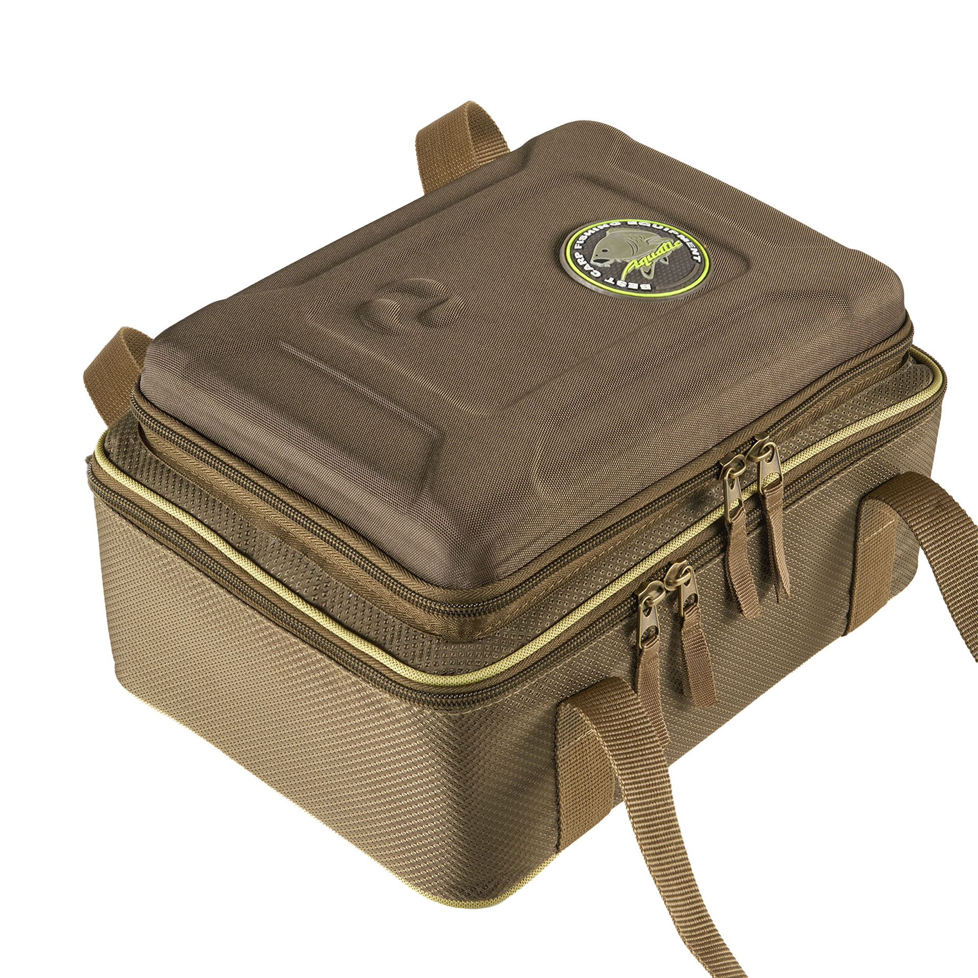 Термо-сумка с 6 банками Aquatic (32х23х15см) - Термо-сумка полностью выполнена из высококачественного износостойкого нейлона и имеет прорезиненное дно, благодаря чему практически не промокает и легко отмывается от загрязнений. Для максимально длительного хранения ваших дипов и насадок весь внутренний объем термо-сумки покрыт технологичным термоизоляционным материалом. Термо-сумка укомплектована 6-ю банками диаметром 89 мм и высотой 80 мм, размещенными в специальном съемном отделении с мягкими перегородками на липучках, которые позволяют подгонять размеры ячеек для банок другого объема. Верхняя крышка на молнии имеет вместительный формованный карман, в котором можно хранить рыболовную коробку, или другие полезные аксессуары. Для удобства транспортировки термо-сумка имеет две ручки из прочной стропы с мягкой накладкой на липучке.