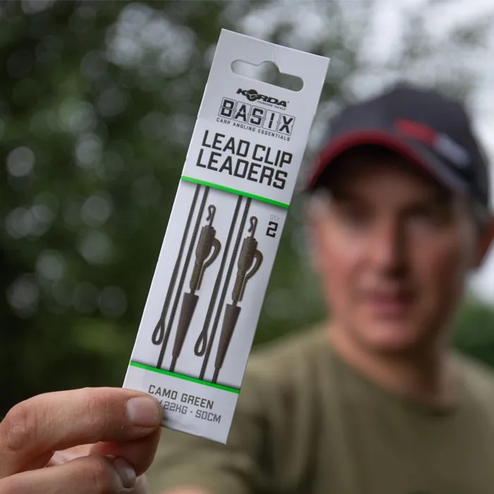 Лидеры Korda Basix Lead Clip Leaders - это отличный способ скрыть свой лидер, поскольку они выполнены в зеленом цвете, который хорошо сочетается с любым окружением. Также в зеленом цвете выполнены клипса для поводка и хвостовая резинка, которые поставляются в комплекте с этим поводком. Лидер Korda также оснащен вертлюжком QC размера 8, прикрепленным к одному концу.
