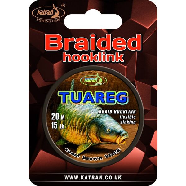 Поводковый материал Katran Tuareg - Сочетание волокон Tualon и Kelvar делает TUAREG невероятно прочным относительно своего диаметра. Высококачественный тонущий плетёный шнур без покрытия TUAREG обеспечивает естественную презентацию на дне озера или реки. Благодаря камуфляжной расцветке коричнево-чёрного цвета, этот прочный и полужёсткий шнур премиум-класса практически незаметен в любых условиях. Его можно использовать в качестве шок-лидера в закоряженных водоёмах или местах с высокой растительностью.