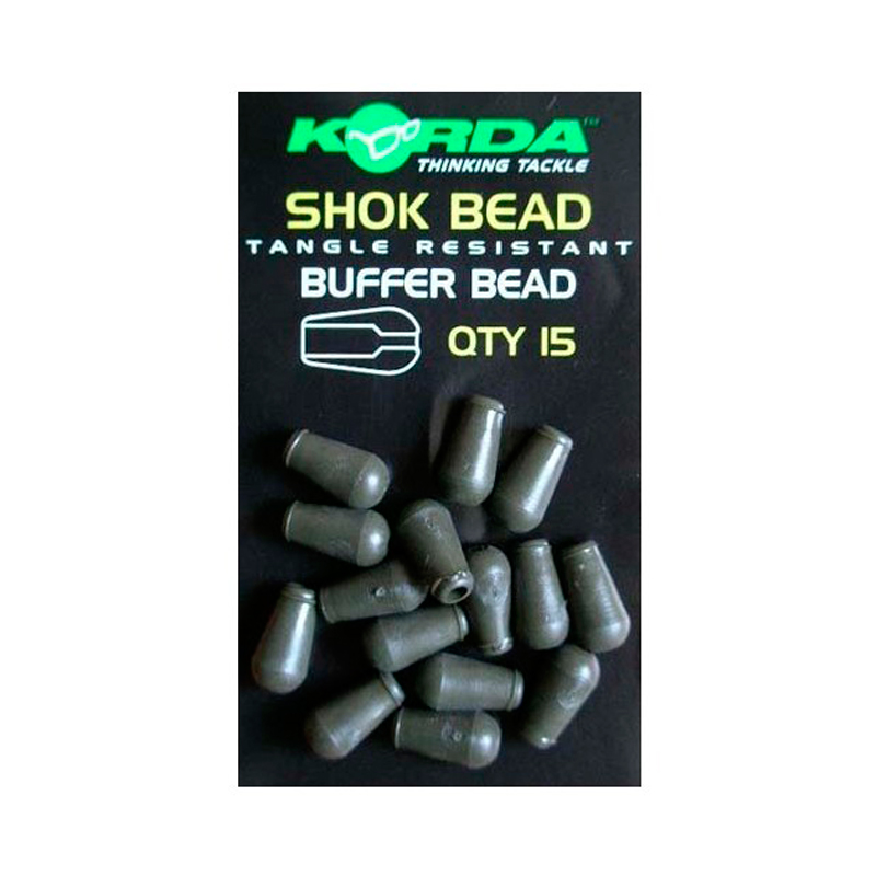 Korda Shok Bead – малая конусообразная бусинка, закрепляемая вертлюгом 8 размера. Применима со скользящими монтажами, маркерными поплавками, либо с любым монтажем, требующим амортизирующую бусинку.