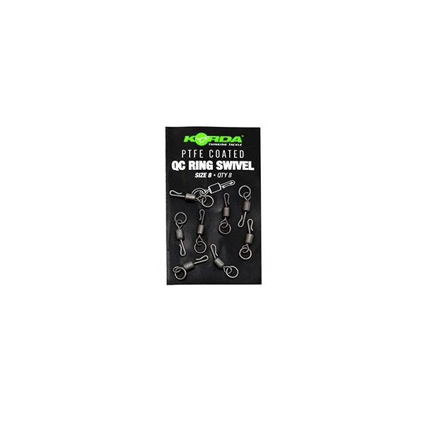 Korda PTFE QC Ring Swivel - вертлюги с кольцом с покрытием из PTFE, которые разработаны для быстрой смены поводка, сохраняя крепкое и надежное соединение. Быстросъемный элемент QC стал неизменным фаворитом Team Korda и позволяет менять и повторно забрасывать оснастку за минимальное время… пока рыба крутится у вашего прикормочного пятна.