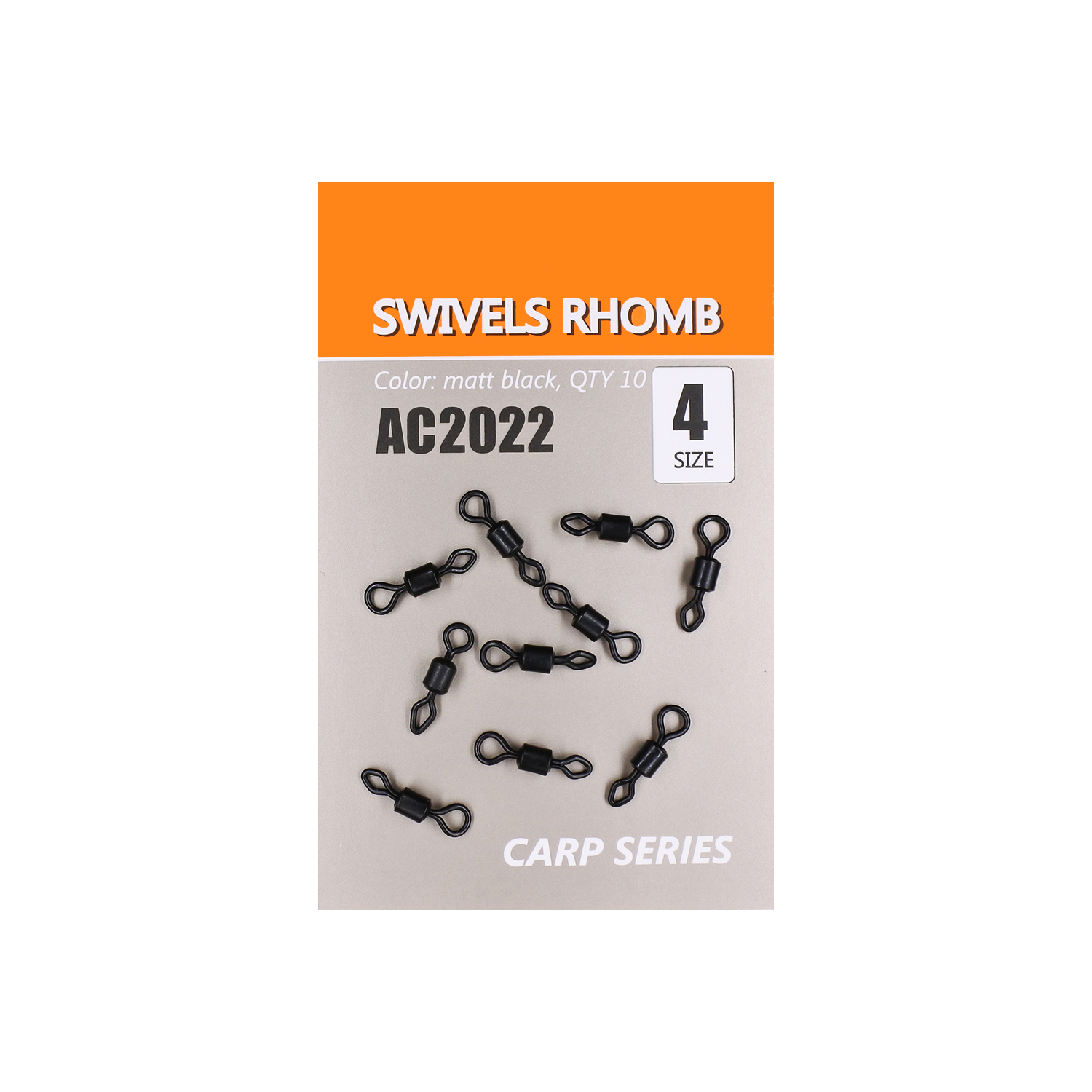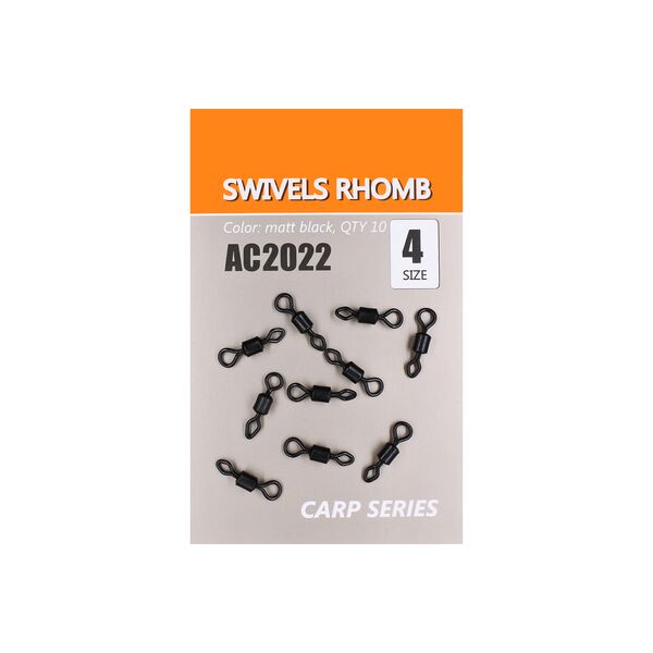 Вертлюг ORANGE Diamond Eye Swivels Rhomb № 4 (10 шт в уп) - вертлюг рыболовный с ромбовидным ушком обладает высоким качеством и надежностью. Свободно вращающиеся кольца вертлюга исключают перекручивание поводка или оснастки во время рыбалки.