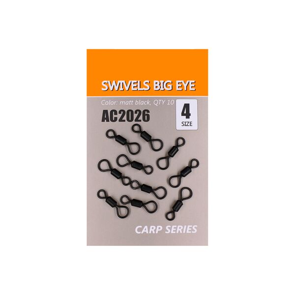 Вертлюг ORANGE Swivels Big Eye № 4 (10 шт в уп) - вертлюг рыболовный обладает высоким качеством и надежностью. Свободно вращающиеся кольца вертлюга исключают перекручивание поводка или оснастки во время рыбалки.
